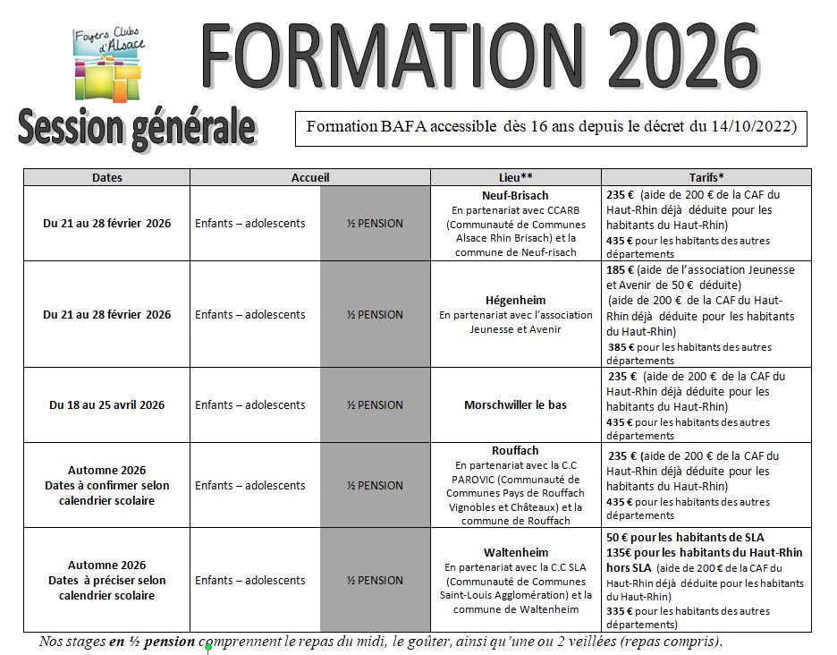 Du 05 au 12 avril 2025 1/2 PENSION Morschwiller le bas 235€ (aide de 200 euros de la CAF du Haut-Rhin déduite pour les habitants du Haut-Rhin)